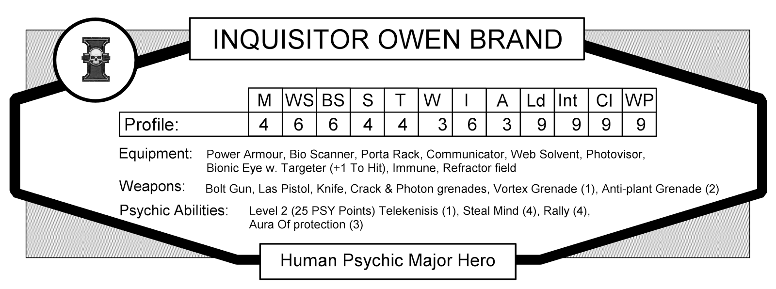 I thought I'd put up the details for the participation game that Gadge and Andy (Of Tales From The Maelstrom) and myself put together and demo'ed for a Rogue Trader day a few years ago. It's designed from 2-7 players, along with a GM.